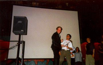 This picture is of myself going up to collect the 3rd place certificate for our society. Why me? well because I'm the mug that organised our lot to go because I was silly enough to decide to be the society Secretary for yet another year. How stupid can one get? In case you can't guess I'm the guy in the black denim jacket and erm all black :)